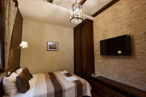 В историческом Киеве, всего в 10 мин. ходьбы от Ж/Д вокзала расположился мини-отель «Petrani Central». Отличительной особенностью отеля является тихий, живописный район для отдыха. Номерной фонд гостиницы представлен номерами разных категорий. Все они с современным ремонтом, удобной мебелью и необходимой техникой. Доступ к сети Интернет предоставляется бесплатно. Для собственного транспорта имеется парковка. Внимание: курить разрешено строго в отведенном месте. В шаговой доступности от «Petrani Central» находятся кафе, рестораны, магазины, к центральной части столицы всего 15 мин езды. От отеля к Ж/Д вокзалу всего 800 м, к аэропорту 38 км, к автостанции 7,9 км.